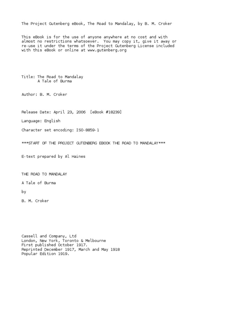 The Road To Mandalaya Tale Of Burma By Croker B M Bithia Mary 1849 1920 Pdf Project Gutenberg