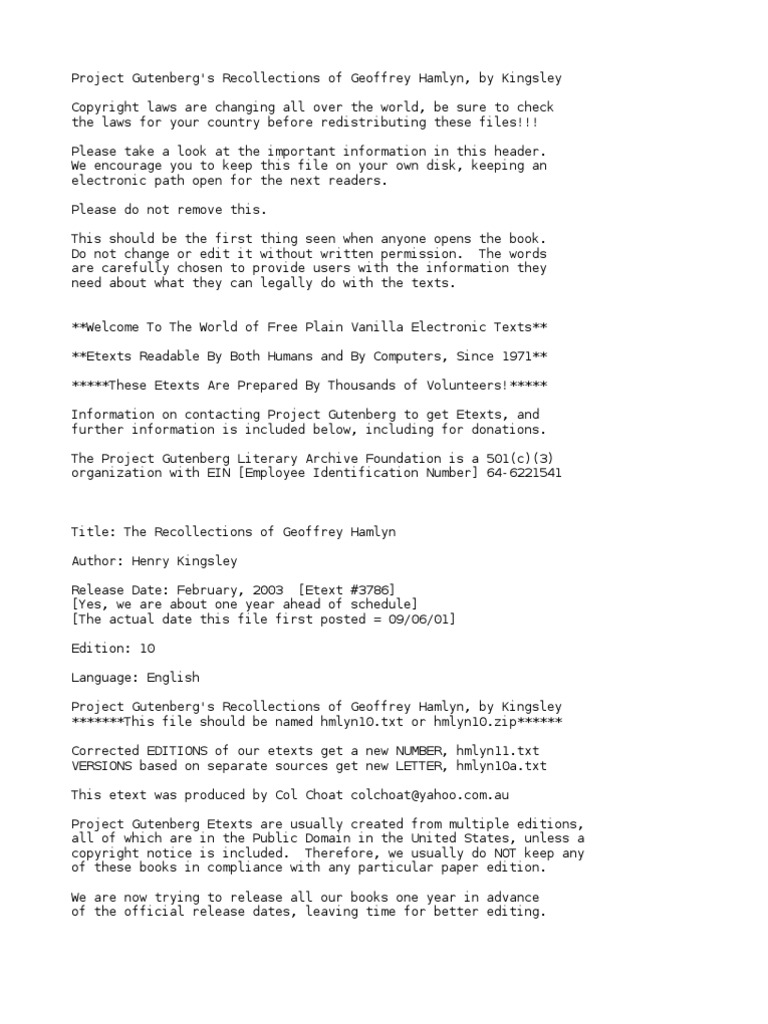 Recollections Of Geoffrey Hamlyn By Kingsley Henry 1830 1876 Pdf Project Gutenberg Indemnity